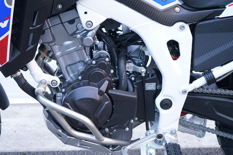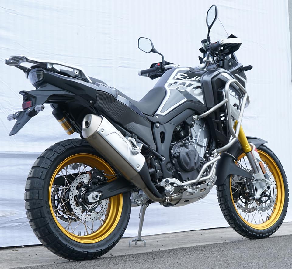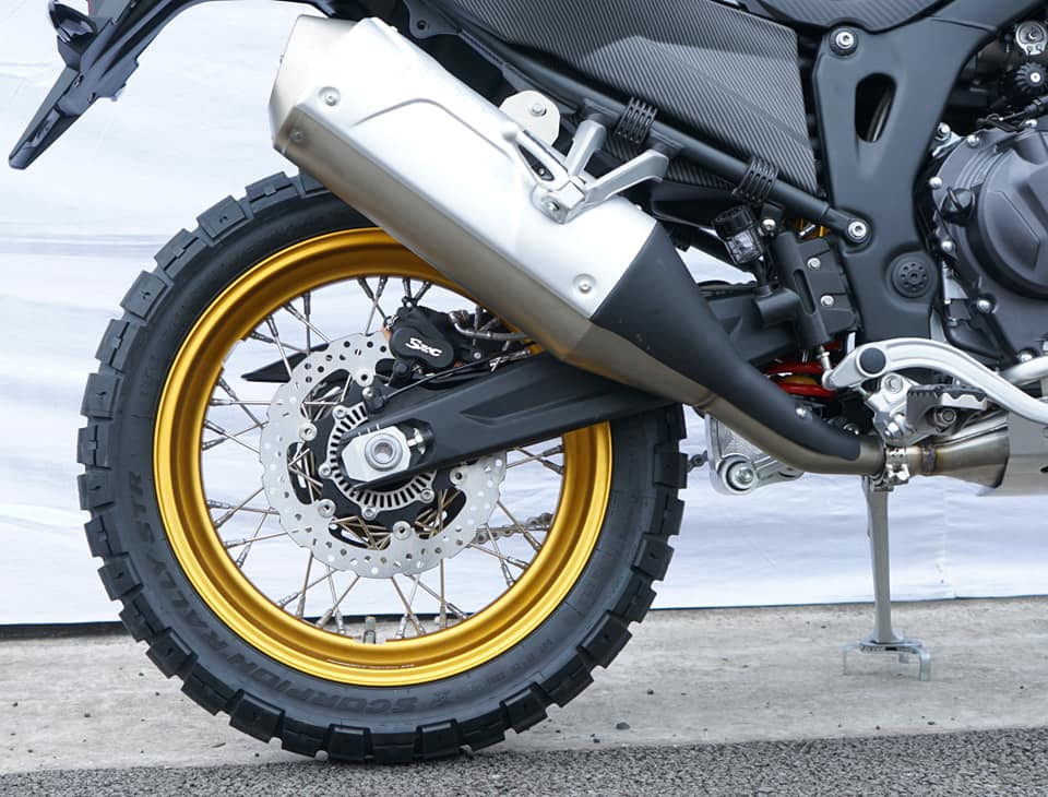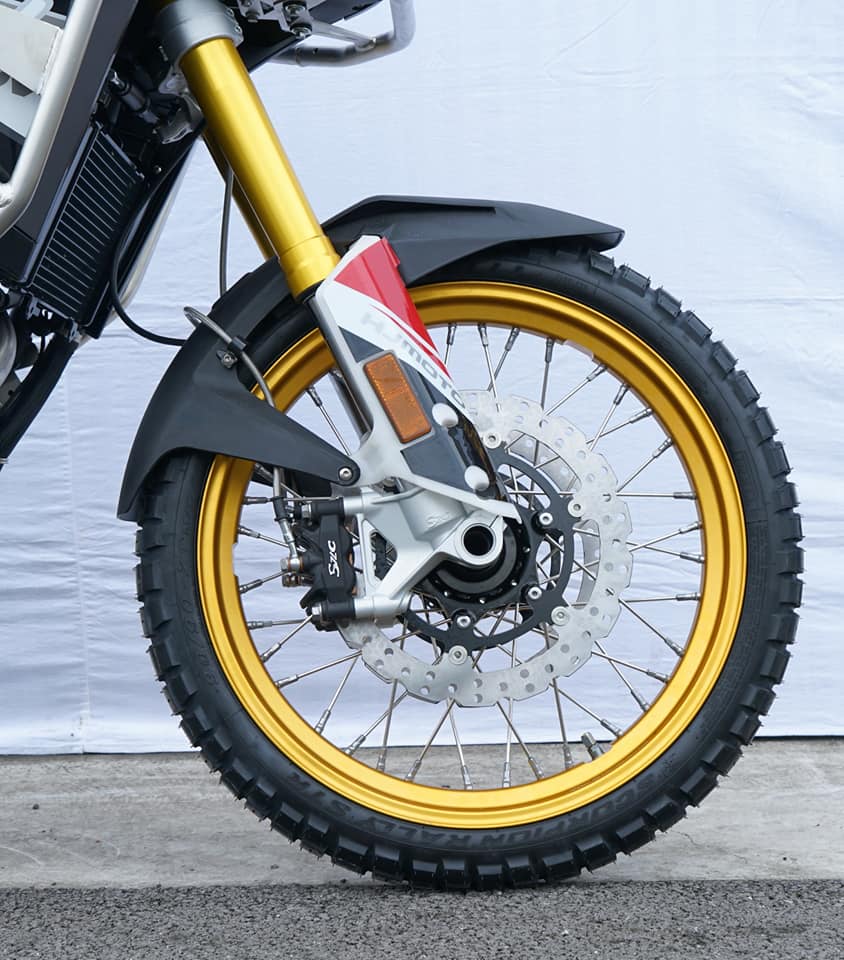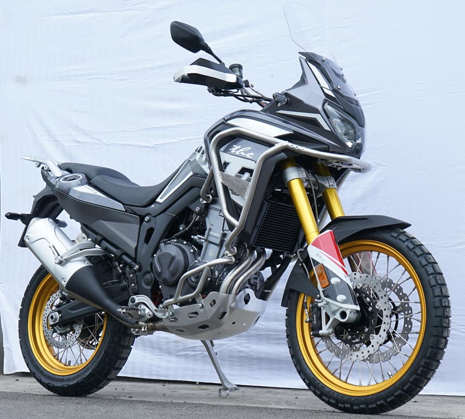 The HJ500-8 is the street version of the HJ500-8 ADV. Its also able to drive offroad with its long travel suspension and its guards, however the area of application is long distance travel adventures on the road. With its street tires its hard to find a more comfortable bike for your next road trip!